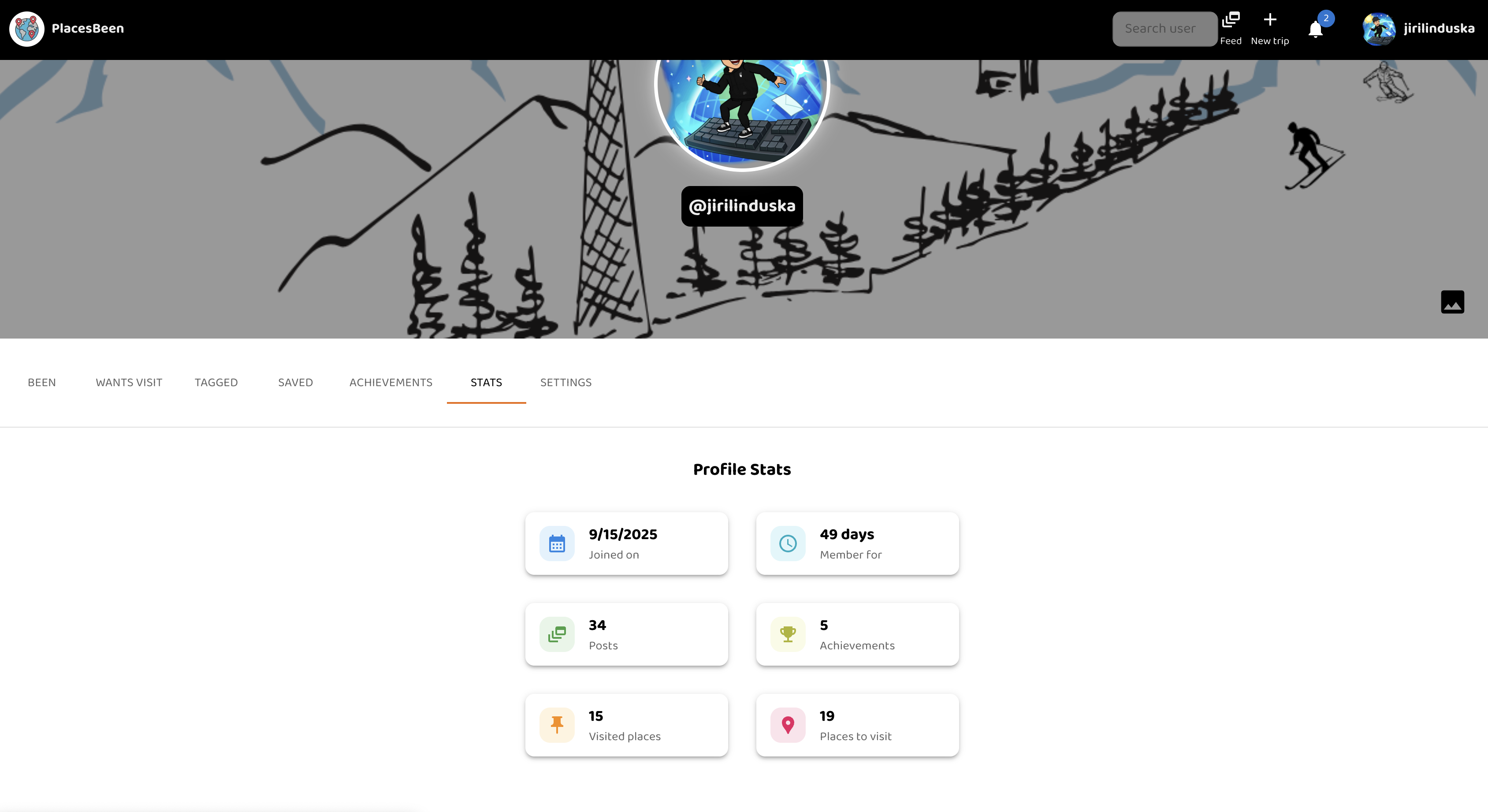 Users can create lists of places they want to visit, upload photos from visited locations, tag other users, react to posts, collect achievements, and get overall travel inspiration.
